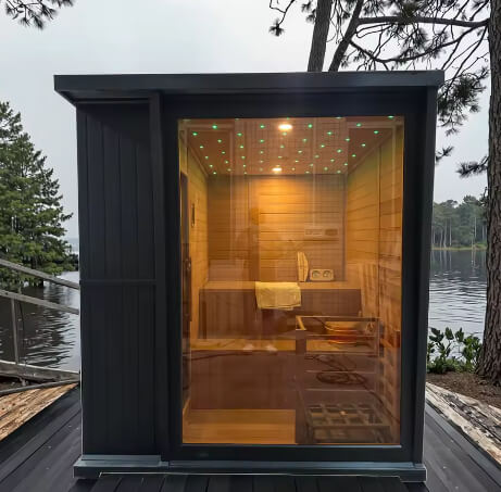 4-Person Black Modern Cube Outdoor Steam Sauna - 6kW ETL