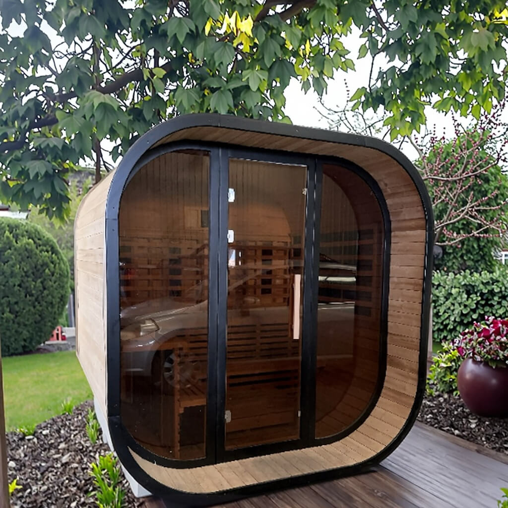 6-Person Outdoor Barrel Sauna - Panoramic Glass & ETL Heater