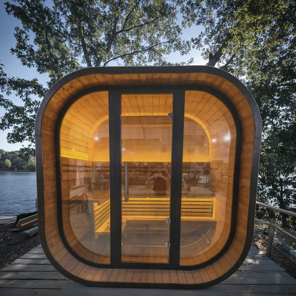 Elite Spruce Outdoor Barrel Sauna - Panoramic Glass View