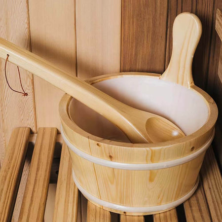 High-Quality Accessories: Includes essential sauna accessories such as a wooden bucket & ladle, hourglass timer, thermometer, and S backrestfor a complete, luxury experience.