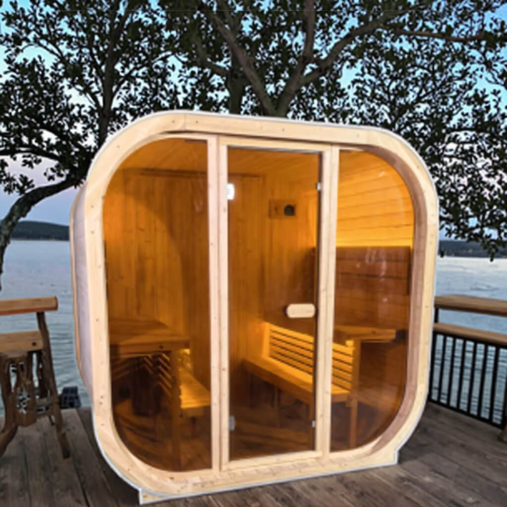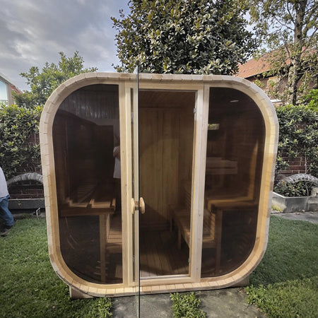 Elite Spruce Outdoor Barrel Sauna - Panoramic Glass & Smart Heat