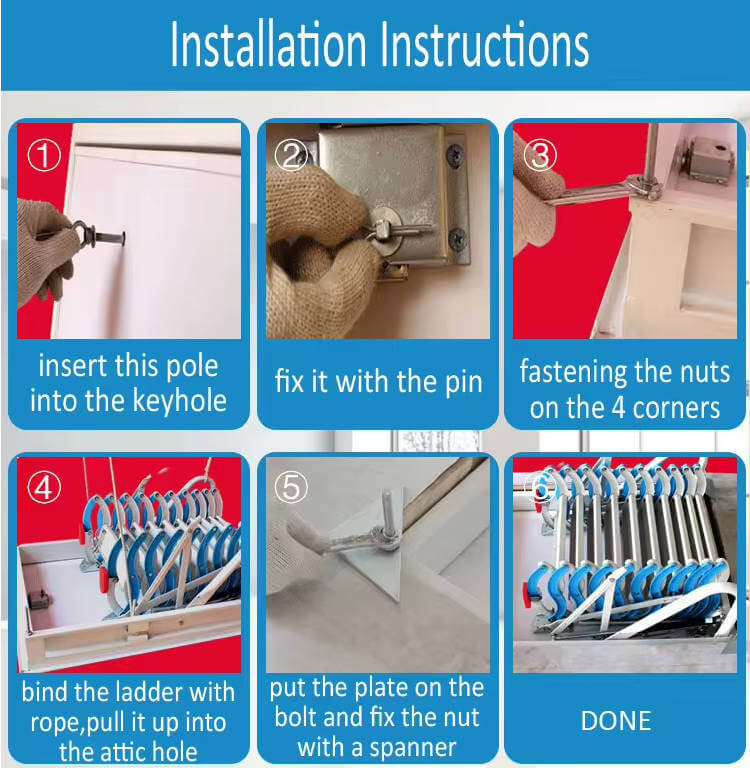 Loft Hatch with Attic Ladders Rough Opening Size 30 Inch x 30 Inch 12 Steps 9.8 Feet Height
