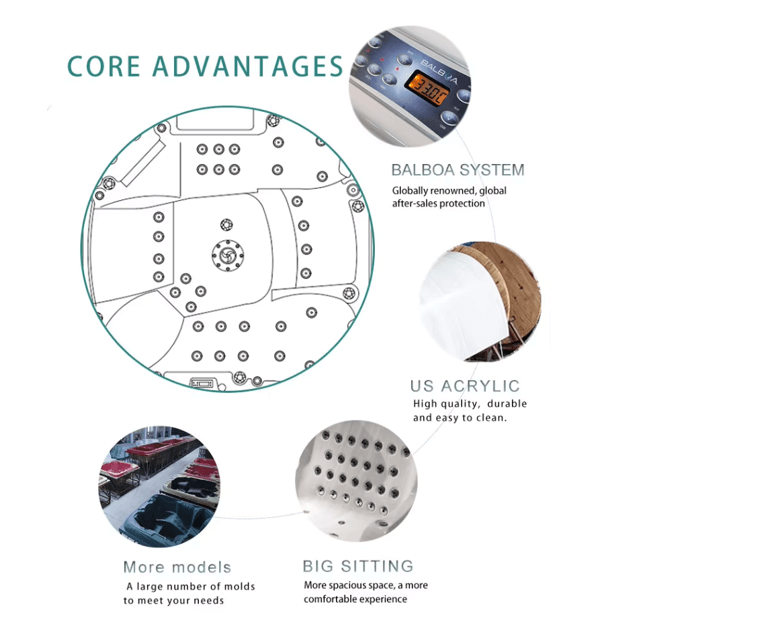 Premium USA Aristech Acrylic: Built with high-durability, non-porous acrylic reinforced with fiberglass for superior heat retention and long-term structural integrity.