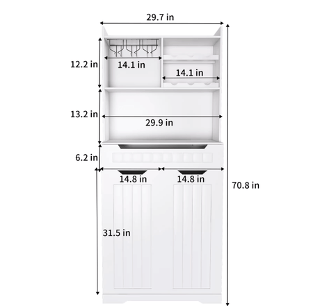 - Expansive & Well-Organized Storage Solution:This 70-inch tall hutch cabinet revolutionizes home organization with intelligently divided storage areas. The design features three open compartments for frequently used items, a generous 30-inch wide tabletop perfect for small appliances, 2 smooth-operating drawers, and a spacious bottom cabinet - offering tailored storage solutions for everything from kitchen essentials to display items.