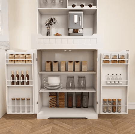 - Ultimate Multi-Purpose Furniture Piece:Designed for maximum versatility, this cabinet effortlessly transforms to suit your needs. Use it as a kitchen storage unit, an elegant buffet server for dinner parties, a charming coffee bar station, or a sophisticated liquor display cabinet. Its adaptable design makes it equally functional in dining rooms, living areas, or entertainment spaces.