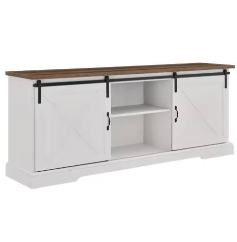 Product Name:Farmhouse Sliding X Barn Door 70" TV Stand for 80" TVs - Rustic Oak/Brushed White
